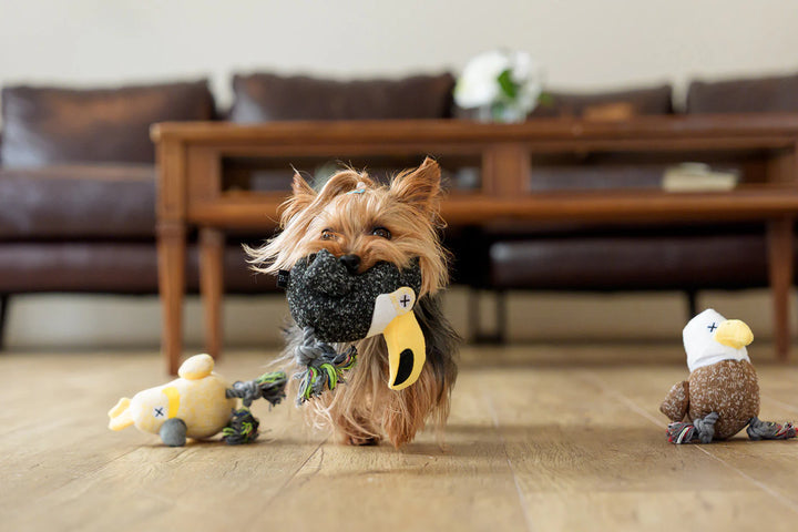 FAD Animal Plush Dog Toy with Rope - Toucan Design & Squeaker